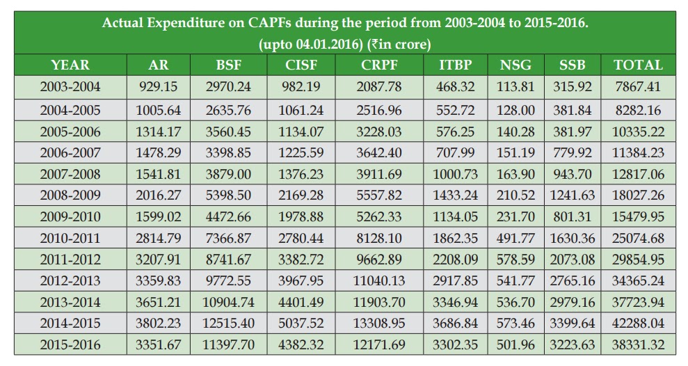 संपूर्ण केंद्रीय सशस्त्र पुलिस बलों इत्यादि पर किया गया व्यय
